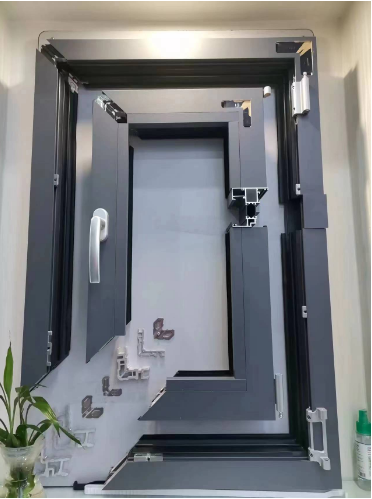 普通断桥铝门窗框体组角仅采用角码组角连接,角强度差,后期由于温差变形极易出现缝隙导致漏水。